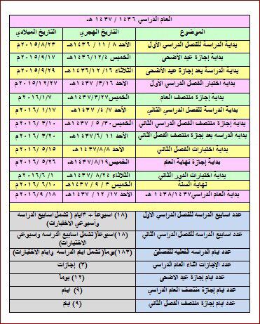 التقويم الدراسي لعام 1437 1438 هـ تعليم كوم