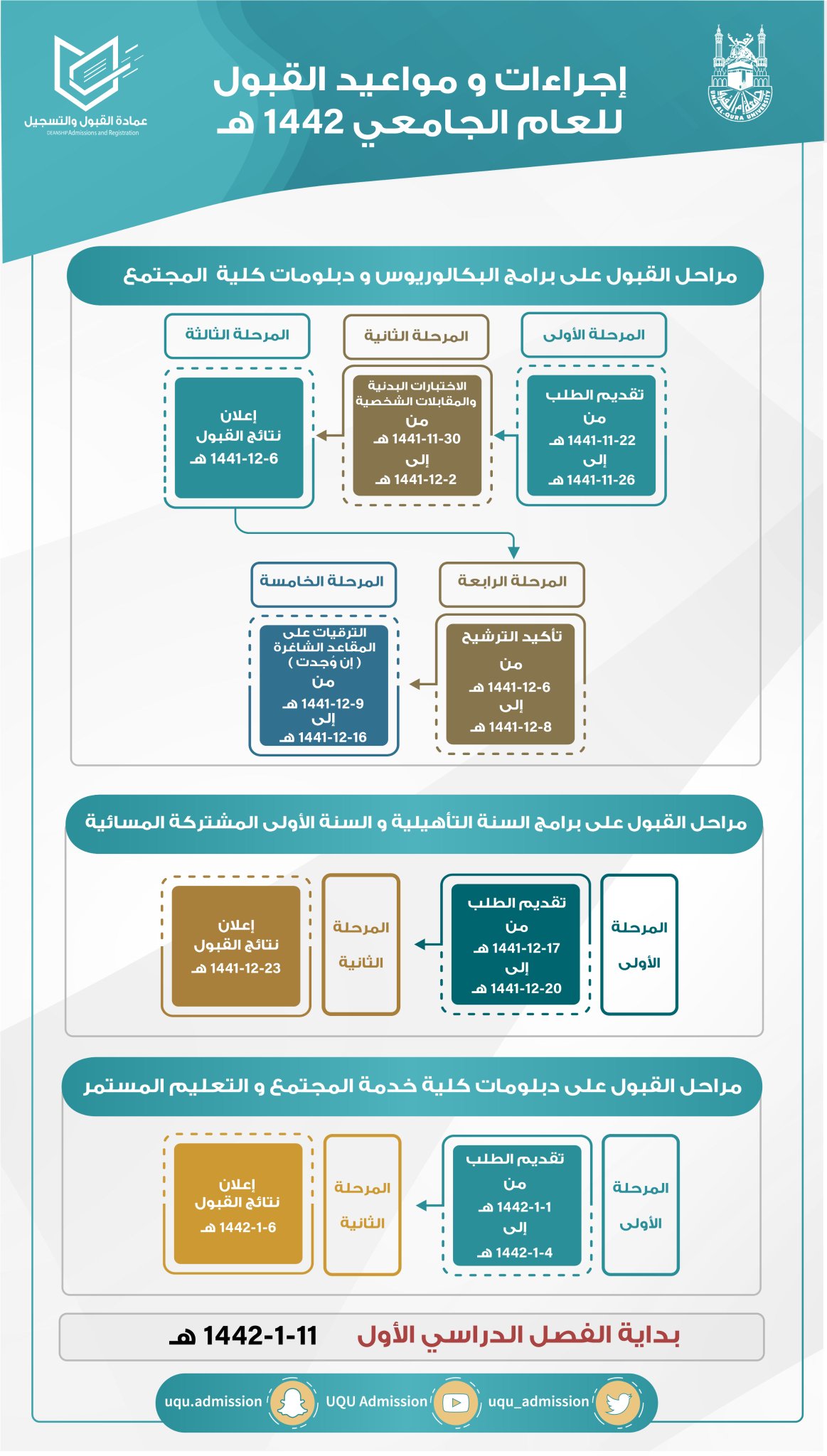 عمادة القبول و التسجيل On Twitter إجراءات ومواعيد القبول للعام الجامعي 1442هـ بجامعة أم القرى