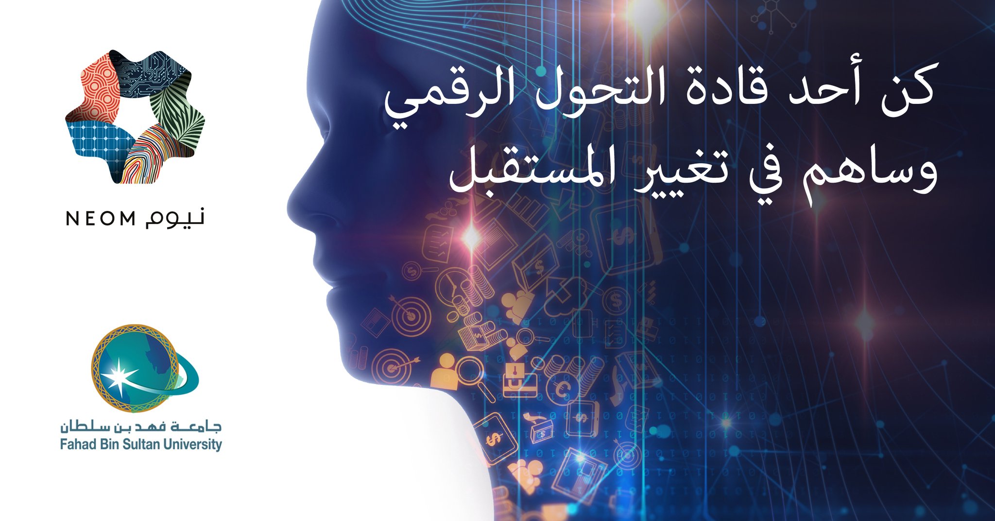 جامعة فهد بن سلطان On Twitter كن أحد رواد التحول الرقمي في المشروع الأذكى على مستوى العالم شارك في بناء المستقبل الرقمي في نيوم أول وأكبر منطقة ذكية بالكامل من خلال برنامج