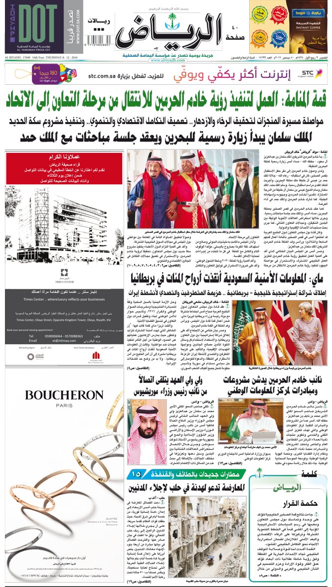 جـ ر يـ د ة ا لـ ر يـ ا ض On Twitter جريدة الرياض عدد 17699 الخميس 9 ربيع الأول 1438 هـ 8 ديسمبر 2016م Https T Co Bbjcznqaho